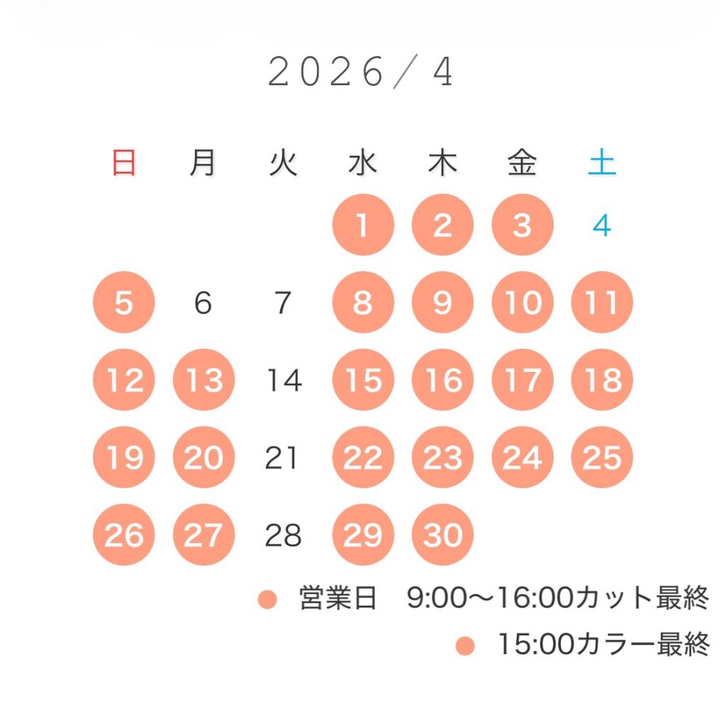 4月の予約受付は2月28日(土) 8:00〜開始いたします。