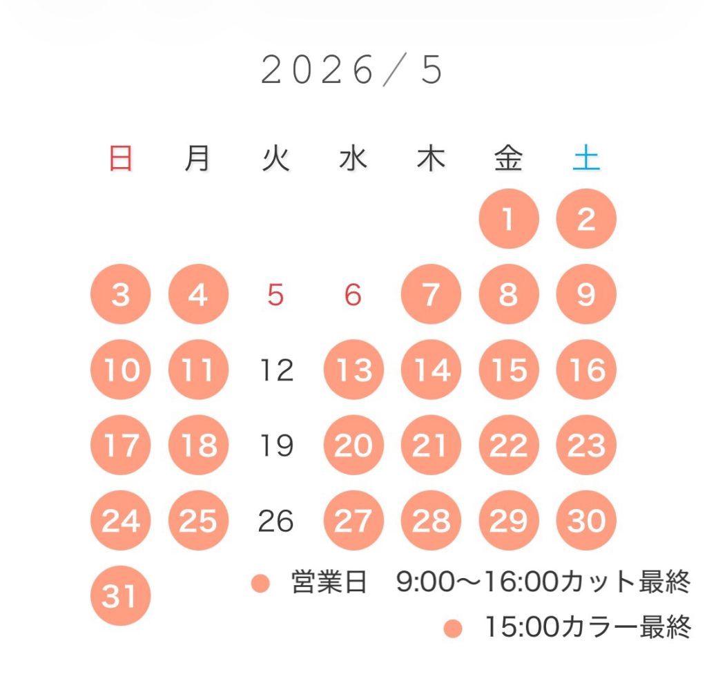 5月の予約の受付は4/1(水)8:00〜開始いたします。